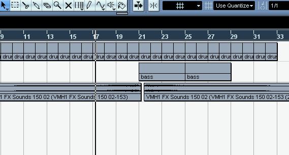 К аудио-дорожкам и фрагментам, в принципе, применимо многое из описанного по отношению к их MIDI-сородичам. Их точно также можно разрезать, копировать, склеивать; при добавлении, аудио-фрагменты точно также встают под сетку в квантайз.