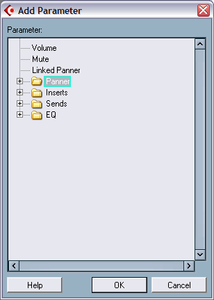 В папочке Inserts поддиректориями будут расположены все вставленные в канал плагины обработки и в них все их возможные параметры, в папочке Sends параметры посылов (о них – в следующей части статьи), в папке EQ – управление параметрами встроенного четырехполосного эквалайзера канала, и, наконец, папка Panner с одним единственным параметром внутри – Pan Left-Right.