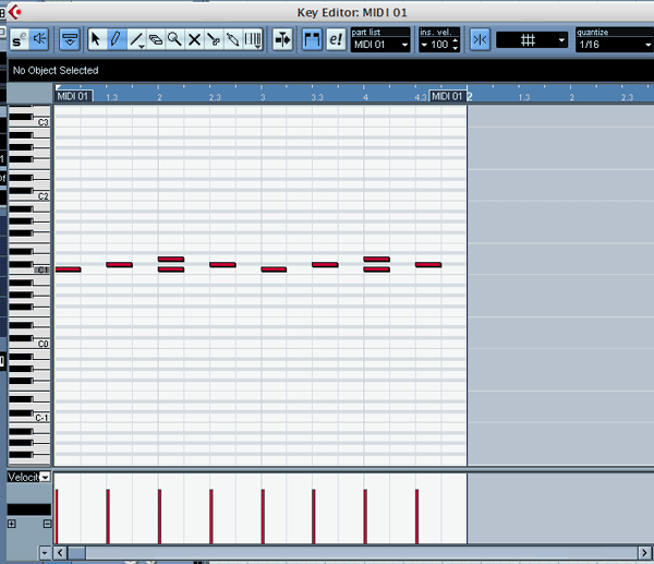 После задания размера квантайза, все добавляемые в секвенсор элементы будут автоматически подвинуты под сетку, а рисуемые в клавишном редакторе ноты также будут подогнаны под заданный размер и по длине.