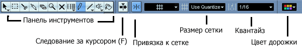 Разберем верхнюю панель чуть поподробнее. Панель инструментов содержит набор инструментов для работы с дорожками: