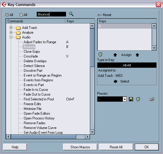 Лично я назначил Bounce на клавишу B, дабы не лазить в меню Audio->Bounce Selection каждый раз, когда у меня имеется необходимость что-то склеить.