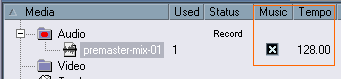 Примечание: Чтобы Tempo Track корректно изменял скорость аудио-дорожек, добавленных в проект, таких как например лупы, необходимо сначала активировать режим Music Mode и задать BPM для фрагмента. Проще всего это сделать в пуле (Ctrl+P) в записи соотвествующего фрагмента: