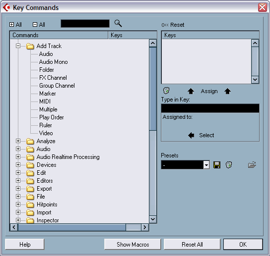 Это может быть удобно как в случае, если вы хотите частично переназначить управление, так и если вы привыкли, например, к какому-то другому набору клавиш, например Logic'овскому и хотите, чтобы Cubase управлялся так же.