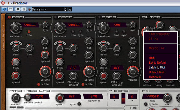 Назначение ручки VST-инструмента на физическую ручку контроллера MIDI-клавиатуры производится в самом инструменте. Для этого, как правило, нужно кликнуть правой кнопкой мыши по нужной ручке, выбрать пункт Latch to MIDI, а затем просто покрутить ручку контроллера клавиатуры, на которую вы хотите назначить контроллер: