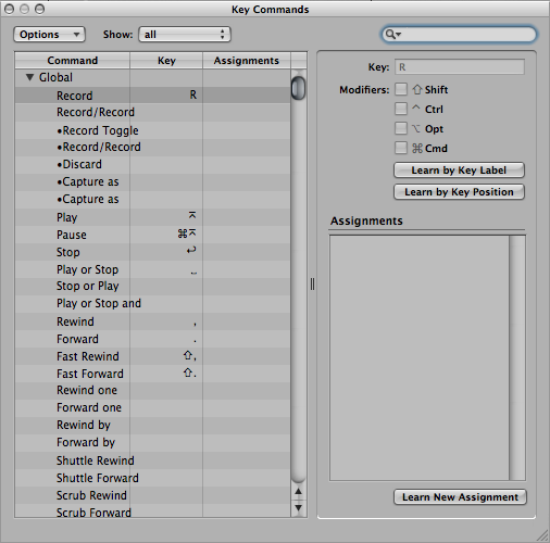 Для того чтобы переназначить горячую клавишу, выделите функцию, на которую вы хотите назначить клавишу и нажмите на кнопку Learn by Key Label, чтобы она загорелась тёмно-серым цветом. Теперь на клавиатуре нажмите на клавишу или сочетание клавиш, которые будут принадлежать выделенной функции и нажмите на кнопку Replace. Учтите, что выделять нужно мышью, а если вы попробуете нажать на клавиатуре стрелочку вниз или вверх, то автоматически пересохранится горячая клавиша.