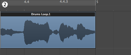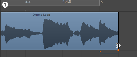 Для того чтобы произвести такую операцию, нужно высчитать сколько тактов и квадратов находится в аудио треке, а затем подогнать под сетку проекта. Для этого нажмите и удерживайте клавишу [OPTION (Alt)], а затем перетяните правый угол аудио-клипа на нужную позицию.