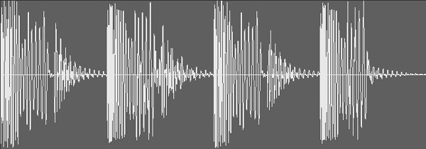 вы должны услышать, как каждый второй удар бочки звучит чётче, чем первый.