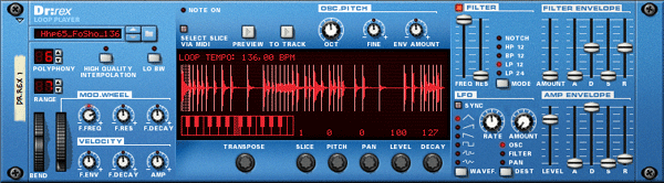Для начала воспользуемся проигрывателем лупов Dr. REX. Чтобы добавить этот проигрыватель, нужно правой клавишей мыши щёлкнуть на чёрное поле под микшером и выбрать в открывшемся меню Dr.REX Loop Player.