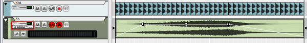 Давайте рассмотрим, как реализовать Side-Chain компрессию в Record. В качестве примера я взял две дорожки, на одной из которых была бочка, а на другой переходный FX, который и будет обрабатываться компрессором: