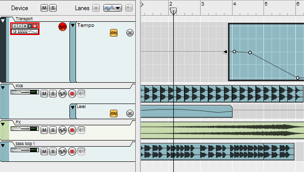 В Record, разумеется, присутствует возможность автоматизации любых параметров дорожки, ее Insert-секции, эквалайзера, блока динамической обработки, и даже ее темпо-ритма.
