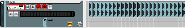 Я определил параметр Level – высоту фейдера дорожки. После этого в окне секвенсора к трэку добавится пустая линия автоматизации: