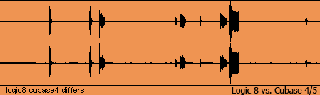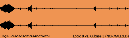 Результаты тестирования Logic оказались весьма интересными. В сравнении с Cubase SX3 не было каких-либо сильных различий в каких-то конкретно выраженных местах. Но есть ультратихий шум, видимо и представляющий собой тот самый «окрас»: