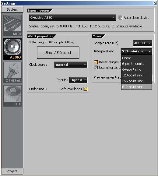 Однако всем пользователям FL следует учитывать, что в опциях FL имеется настройка качества интерполяции: