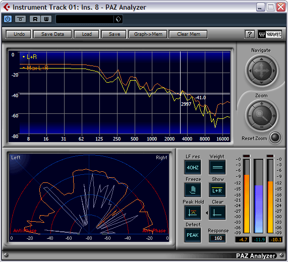 В рассмотренном нами выше анализаторе Waves PAZ Analyzer имеется индикатор противофазы. В случае если мы имеем противофазные явления между стереоканалов, на индикаторе появятся сигналы в красной области: