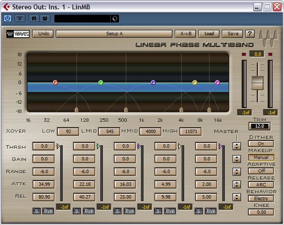 Пакет Waves предоставляет нам компрессор общий c1 comp, имеющий довольно мягкую кривую перегиба и многополосный компрессор LinMB.