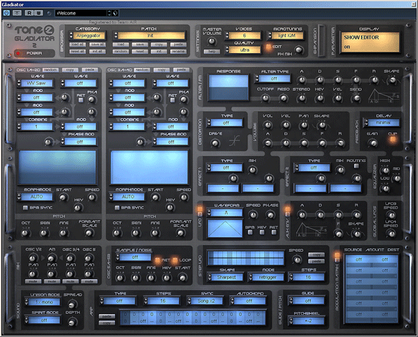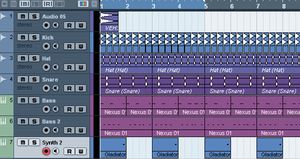 Уже намного интереснее. Однако все это время мы использовали готовые пресеты инструмента Nexus 2, а на одних лишь готовых пресетах далеко не уедешь, тем более что Nexus использует уже заложенные в него семплы и не позволяет кардинально менять тембр выбранного пресета (такая разновидность инструментов называется ромплерами). Давайте посмотрим, каким же образом синтезируются звуки в обычных, не ромплерных синтезаторах на примере Gladiator 2 и добавим в нашу аранжировку еще пару инструментов.