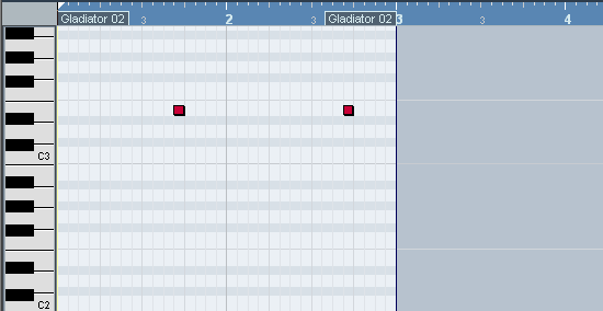 Единственное, надо отключить и Delay и Reverb на панели эффектов Nexus 2. Теперь пропишем партию, для этого нарисуем регион длиной 2 такта и набьем в редакторе конструкцию наподобие: