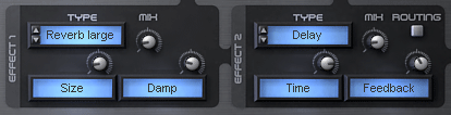 Здесь имеются разные типы реверберации (Reverb Small, Reverb Large итд) и дилэя (PingPong, Delay, PingPong Damp), а также многие другие полезные эффекты, которые мы пока что использовать не будем.