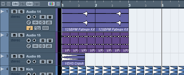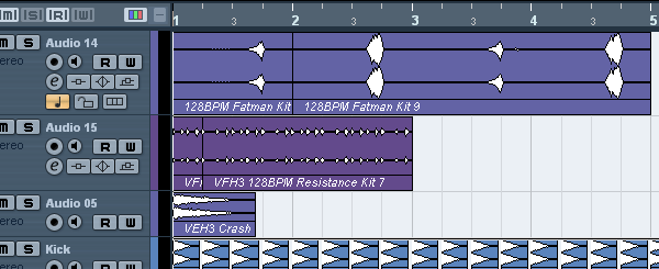 Далее жмем File -> Import -> Audio File и загружаем лупы 128 BPM Fatman Kit 9 из Vengeance Future House и VFH3 128 BPM Resistance Kit 7 из Vengeance Future House 3. После добавления лупов от них надо будет отрезать по кусочку разной размерности, от первого 1 такт (ставим квантайз 1/1), от второго одну четверть (ставим Quantize 1/4 соответственно):