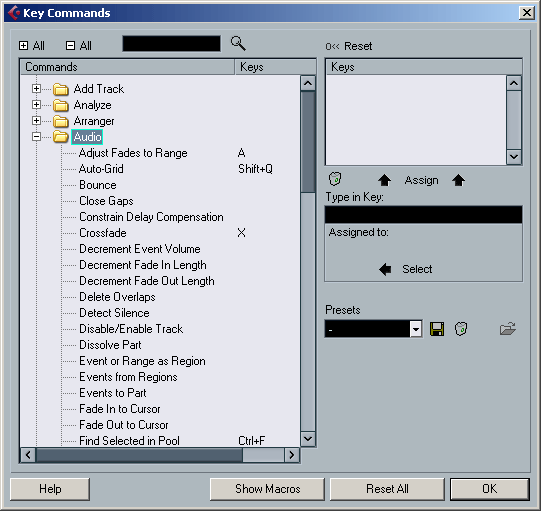 Горячие клавиши в Cubase – это все. Горячие клавиши используются для осуществления очень многих действий, и это, на самом деле, очень удобно. Но еще удобнее то, что в отличие от многих других аналогичных программ, Cubase позволяет гибко настраивать и переназначать горячие клавиши, а также сохранять настроенные схемы в виде профайлов.