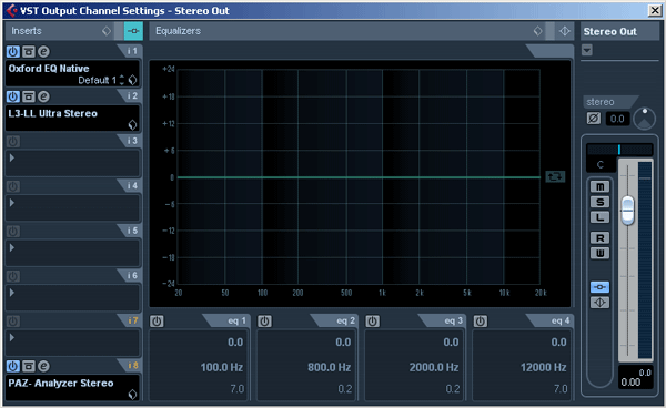 Далее включим в Insert мастер-канала эквалайзер Oxford EQ Native и лимитер L3-LL Ultra Stereo из раздела Dynamics – Multiband: