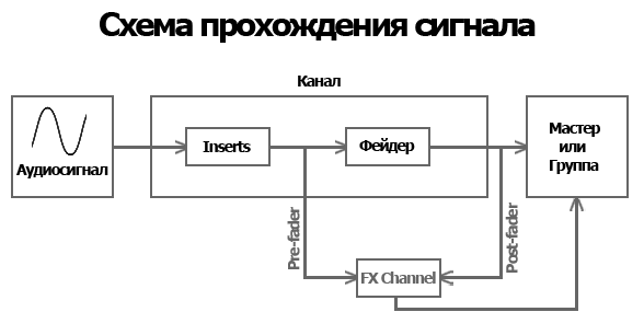 Я вот проверил в своем Cubase 5 как работает операция Pre Fader при посыле сигнала на FX канал. Так вот сигнал обходит только фейдер. А insetr-обработка остается активной. В твоем уроке было сказано что сигнал в этом случае обходит как фейдер так и инсерты. Хотелось бы прояснить ситуацию.
