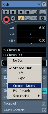 Второй вариант группировки в Cubase позволяет группировать не визуально, а на уровне выходных аудио-потоков каналов.