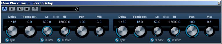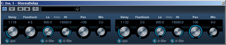 Стереодилэй – очень тонкий инструмент, в правильных руках позволяющий существенно добавить глубину и ширину звучания любому инструменту или же вокалу. Итак, стереодилэй по сути представляет собой два независимых дилэя для левого и правого каналов – казалось бы, очень простой инструмент. Так выглядит штатный стерео-дилэй Cubase 5: