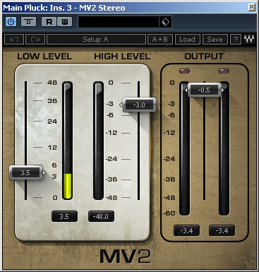 Плагин предельно прост, из элементов управления всего два слайдера – Low Level и Hi Level – низкоуровневая и высокоуровневая компрессия. Передвигая эти два слайдера, мы можем подобрать нужный уровень компрессии звука. Это очень мощный инструмент, позволяющий существенно уплотнить любой инструмент в миксе, будь то плак, лид или же бас.