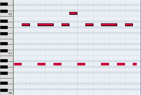 Инструмент готов, теперь нужно прописать партию и настроить Side-Chain. Вот выглядят партии основного баса (верхняя) и саб-баса (нижняя):