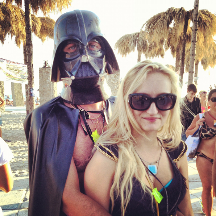 Особенно популярны костюмы Супермена, в которых каждый старается быть похожим на Президента, и, как ни странно, маски Джей Фокса. Да что там говорить, лучше залезу повыше и сделаю еще несколько фоток".