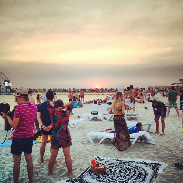 Врожденное любопытство заставило меня вооружиться биноклем, блокнотом и шпионской рацией уже к обеду. Палящее солнце не помеха. Первый объект — пляж за территорией КаZантипа. Здесь тихо и гораздо меньше людей. Жаль, что столько же медуз. Но разговоры о них уже порядком набили оскомину.
