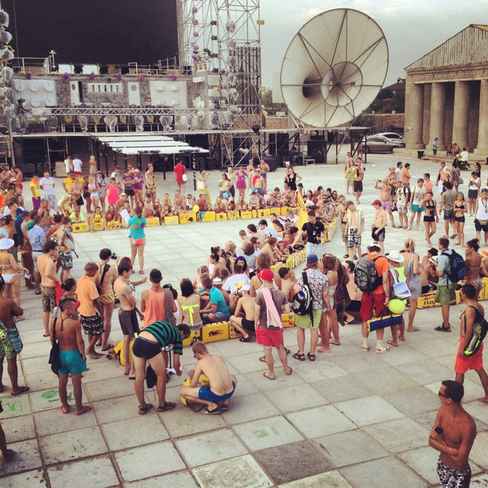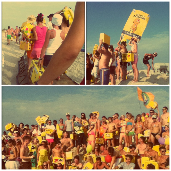 Пляж я покинул ближе к пяти вечера, чтобы запечатлеть сегодняшнюю дневную церемонию — Парад Желтых Чемоданов. Это одна из самых старых и важных традиций КаZантипа, пропустив которую, Секретный Агент рискует сдать свой жетон и сложить полномочия. В наших джеймсбондовских кругах это называется «задание с повышенным уровнем ответственности».