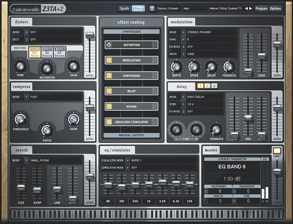Последняя на сегодня модель из серии Z3TA + незначительно изменилась внешне, зато претерпела заметные изменения по части архитектуры синтеза. Любой, кто сможет полностью укротить эту машину, обязательно получит черный пояс по продакшену. Освоить продукцию Cakewalk всегда было довольно сложно.