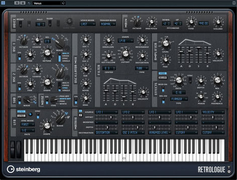Знаменитый Retrologue встроен в программу Cubase 6.5, но доступен и как отдельный плагин для любого другого софта. Это действительно аналоговый синтезатор, который не выдает «ламповых сюрпризов», но звучит просто превосходно.