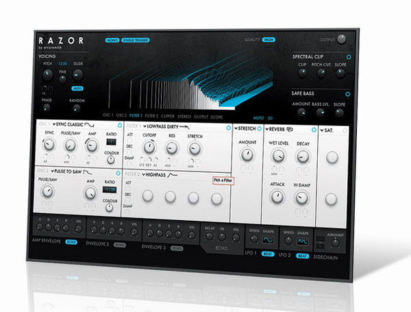 Ближе к экватору чередой идут модели одного из мировых лидеров в производстве музыкального софта. Razor широко известен и любим всеми начинающими продюсерами. В то время как остальные модели от NI имеют некоторый налет «научной заумности» и требуют знания основ физики звука, Razor реализован в таком себе friendly дизайне с интуитивным интерфейсом. Мы видим два осциллятора, двойные фильтры и секцию эффектов, которая состоит из трех элементов: дисссонанс, стерео и динамика.
