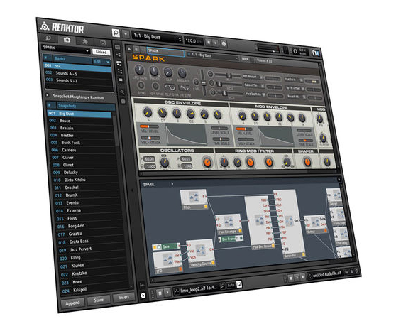 Едва ли не самый дорогой пакет в нашем списке. Сразу после релиза его стоимость переваливала за 500 долларов. Тем не менее, эта цена вполне оправдана. Reaktor 5 — это универсальный кросс-платформенный аудио-конструктор, который позволяет вам использовать огромное количество сэмплов, создавать свои синтезаторы и управлять ними, создавая модули в графическом интерфейсе.