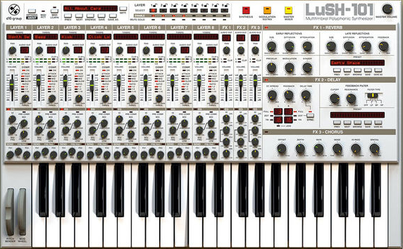 Вместо того чтобы просто создать клон популярного синтезатора Roland SH — 101, D16 решили заморочиться и придумать на базе имеющейся физической модели нечто новое. Так, Lush — 101 получил оснащение 32-голосой полифонией, двумя встроенными генераторами, новыми эффектами и LFO.