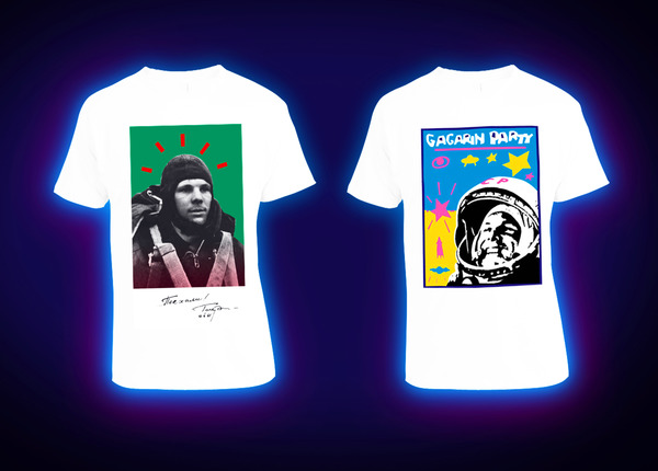 Спустя почти 25 лет у ценителей истории, адептов рейв-движения и простых любителей отдыха в движении появилась возможность прикоснуться к истории — ограниченным тиражом в продажу выходят реплики знаменитых футболок с двух первых российских рейвов — «Gagarin Party» и «Gagarin Party 2». Каждая из этих футболок имеет не только историческую, но и художественную ценность. «Автором рисунка к футболке для первого „Гагарина“ является питерский художник Марат Муракаев, — рассказывает Олег Цодиков, участник первого „Gagarin Party“ и один из организаторов второго „Gagarin Party“. — Рисунок же второй футболки принадлежит авторству Алексея Хааса. Рисунок было решено дополнить подписью „Поехали!“, автографом Гагарина и датой 12 апреля 1961 года. Интернета тогда не было, и как это нужно было сделать правильно, мы не знали. Насколько я помню, автограф Гагарина мы перерисовали через стекло, а слово „Поехали!“ было стилизовано под подчерк Гагарина. Майки эти не продавались а дарились. Довольно быстро эти футболки стали культурным артефактом и служили самым ценным подарком».