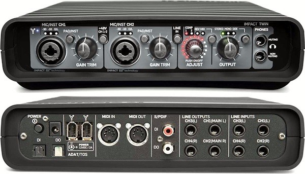 Недавно в продажу поступил новый FireWire аудиоинтерфейс Impact Twin от европейской компании TC Electronic. Модель оснащена двумя микрофонными входами (combo) с предусилителями Impact III, разработанными с целью превратить даже самый, казалось бы, безнадежный микрофон в оружие массового поражения. Помимо этого девайс может похвастаться своей компактностью, частотой в 192 кГц с разрешением до 24 бит, четырьмя аналоговыми входами и выходами, MIDI интерфейсом, восьмиканальным оптическим ADAT интерфейсом, двумя выходами на наушники, S/PDIF входом и выходом.