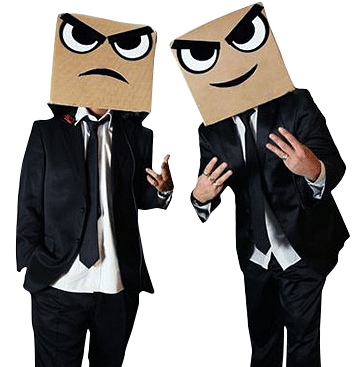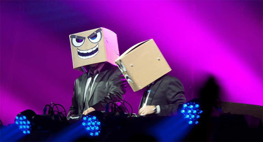 У нас уже был трек под названием «Who Gives A Fuck About Deejays», и главным символом видеоклипа стала кукольная игрушечная маска в форме коробки. Когда пошли первые выступления, мы начали использовать ту самую маску, и это сразу же сработало — люди приходили на наши шоу, фотографировались с нами. Причем даже там, где мы были вообще неизвестны. Так этот образ и сохранился.