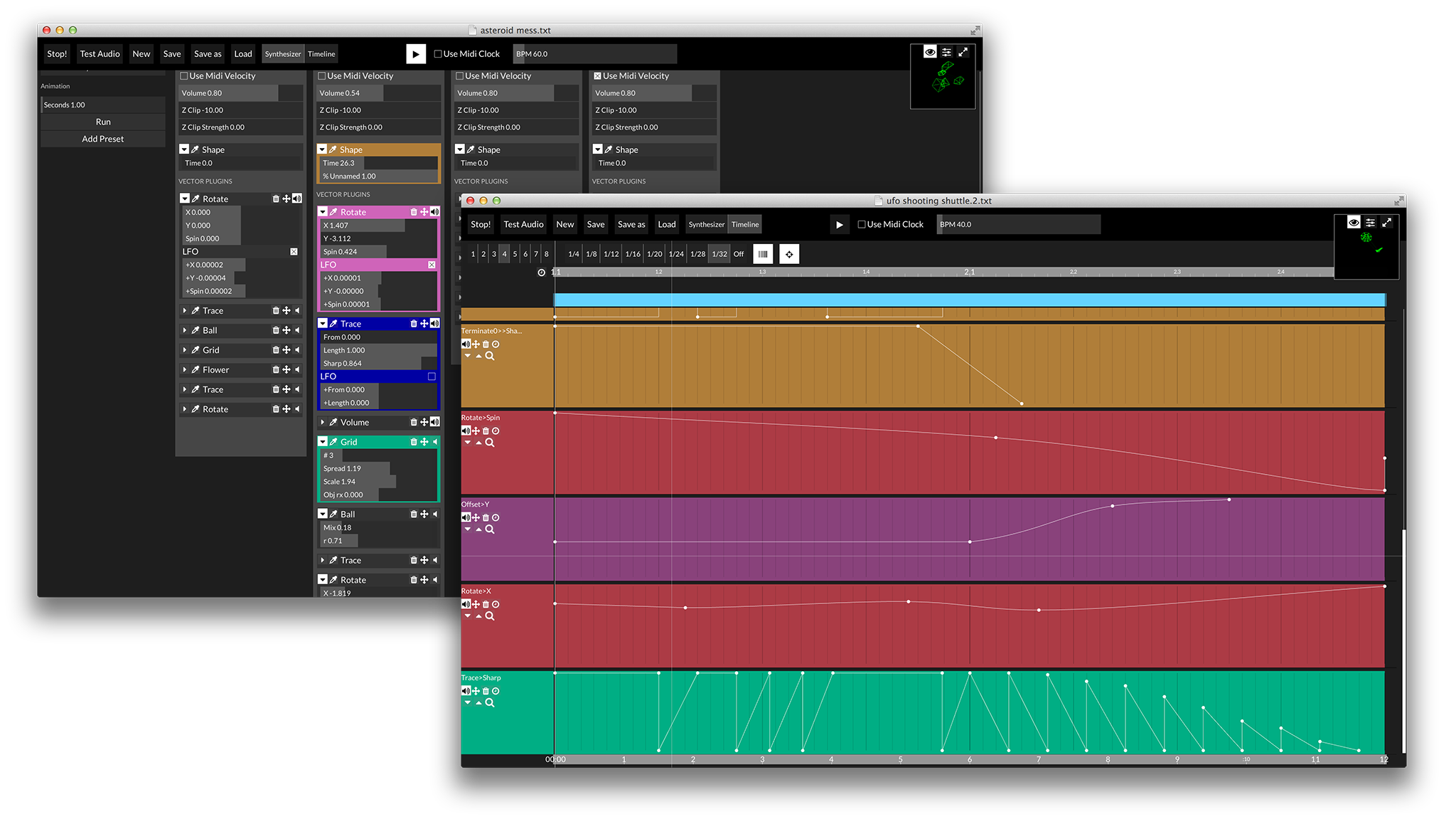 Здесь начинается самое интересное и сложное. Иногда я использую не два, а сразу три канала, чтобы задействовать x, y и z-координаты (например, для 3D-рисунков). Затем я пропускаю трехканальный сигнал через специальный процессор, который конвертирует его в дополненный двухканальный. Появляется перспектива: элементы на заднем плане будут меньше чем на переднем — как трехмерная графика на экране компьютера. На этом этапе снова применяется Blender. Ханси Рабер, который сделал большой вклад в мой проект, написал программу OsciStudio, которая берет данные координат из Blender-проекта для каркасной модели и затем конвертирует ее в звук. Кроме того, в OsciStudio есть MIDI и секвенсор — как и в большинстве виртуальных студий. OsciStudio была одним из моих основных инструментов в процессе создания альбома, а трек Blocks сделан в ней полностью.
