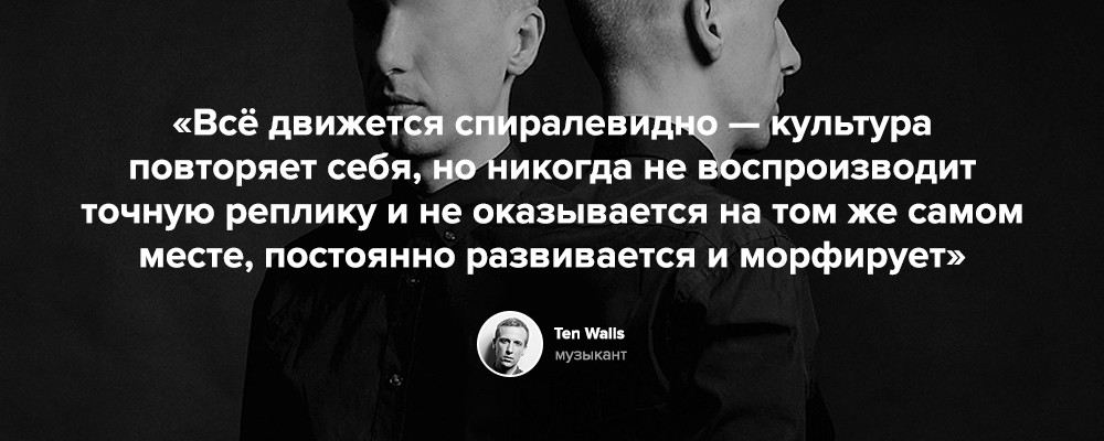 Сложный вопрос... Всё движется спиралевидно, по кругу — культура повторяет себя, но никогда не воспроизводит точную реплику и не оказывается на том же самом месте — всё постоянно развивается и морфирует. Новые горизонты открываются тогда, когда не боишься идти навстречу и думать нестандартным образом. Конкретно в моём случае, я стараюсь изобрести себя заново в каждом треке.