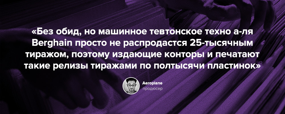 Слушай, меня эта тема очень сильно расстраивает. Я даже ругался в Твиттере с одним довольно известным продюсером по этому поводу. Прямо сказал ему, что когда печатаешь 300 пластинок, ты делаешь это не для так называемого круга избранных и «защиты сцены» — ты печатаешь такой маленький тираж, потому что прекрасно знаешь, что просто не сможешь продать больше копий. Это полный бред, хотя я не имею ничего против техно-сцены и артистов. Просто если у тебя есть предзаказ на миллион пластинок, ты печатаешь миллион пластинок. К чертям напускную элитарность и «завесу таинственности». Музыку делают не для того, что перепродавать на Discogs со стократным ценником, а для того, чтобы её услышали и слушали. Какая к чёрту элитарность? Тогда проще вообще не иметь дела с лейблами и не выкладывать материал в общий доступ — так надёжнее для «аутентичности».