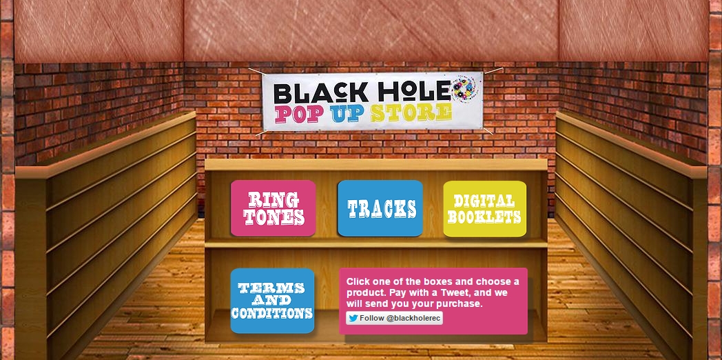 Нидерландская компания Black Hole Recordings, которую Tiesto основал в 1997 году и продал свою долю в 2009-м, представила вниманию публики часть своего каталога в нестандартном для интернет-дистрибуции формате поп-ап. Это первый магазин, использующий в качестве валюты Твиттер — для покупки достаточно проставить в записи теги и упомянуть лейбл.