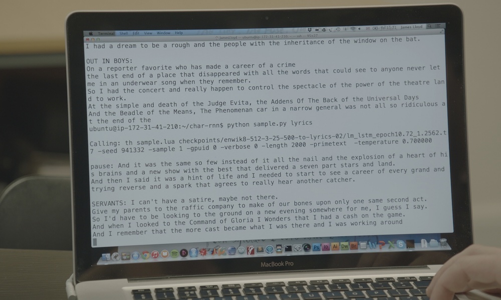 Затем продюсерская команда наведалась в гости к проекту «What-If Machine» Колледжа Голдсмитс, где специальная программа сгенерировала главных героев и ключевые повороты в сюжете. А профессор Мадридского университета Комплутенсе написал полноценный сценарий с помощью компьютерной системы «PropperWryter».
