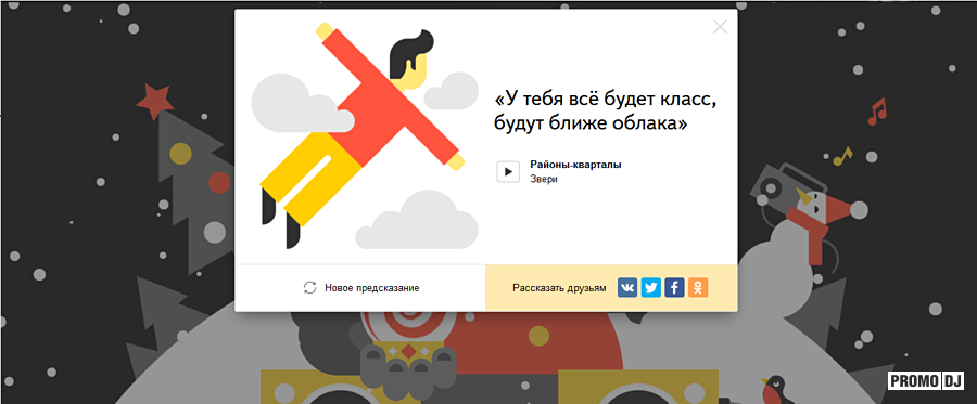 Традиционно богатый на итоговые (развлекательные и аналитические) материалы декабрь иногда может утомить объемами поступающей информации. «Но ведь иногда хочется не поглощать тысячи знаков, а просто нажать на кнопку и получить забавный результат», — подумали в Яндексе и запустили сервис музыкальных предсказаний от лица символа наступающего 2016 года.