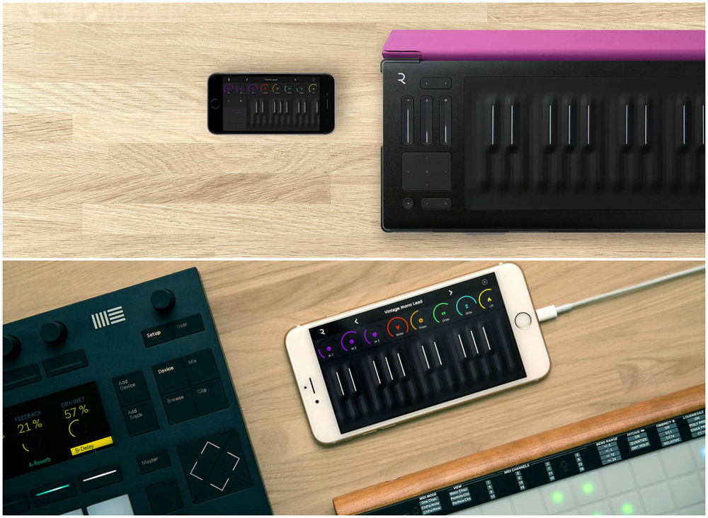 Также NOISE можно использовать в качестве портативного генератора звуков для того же Seaboard RISE или любого другого MIDI-контроллера с многомерной полифонической экспрессией (например, Linnstrument). Режим должен быть максимально удобен благодаря поддержке передачи MIDI-сигналов по Bluetooth.