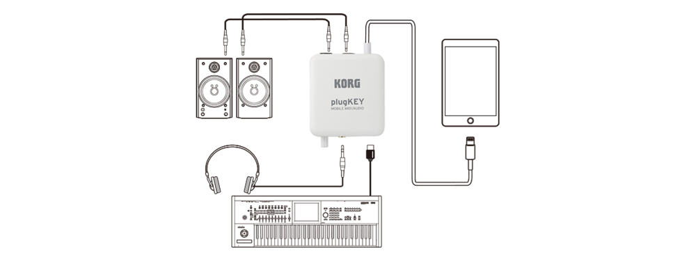 Компактная звуковая карта подключается к iOS-устройствам напрямую через Lightning и оборудована двумя джеками на 6,5 мм с выходом на мониторы или микшер, MIDI-входом, мини-джеком на 3,5 мм с выходом на наушники и регулятором громкости. Питание в plugKEY и дальше в iOS-девайсы подается через разъем Micro USB.