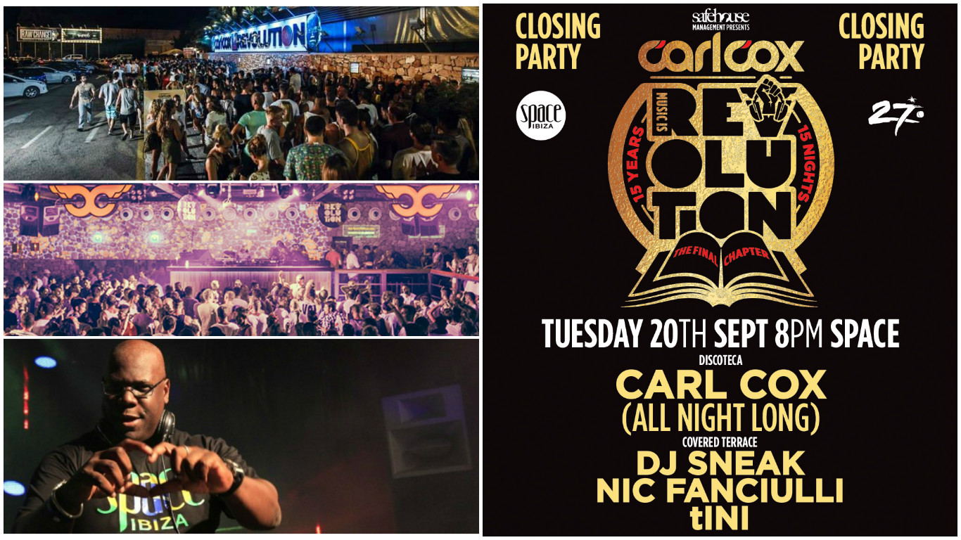 В ночь с 20 на 21 сентября на танцполе завершилась целая эпоха, Карл Кокс отыграл последний сет в легендарном клубе Space Ibiza. В этот вечер он подвел итог своей 15-летней резиденции, а клуб открыл двери в последний раз после 27 лет работы.
